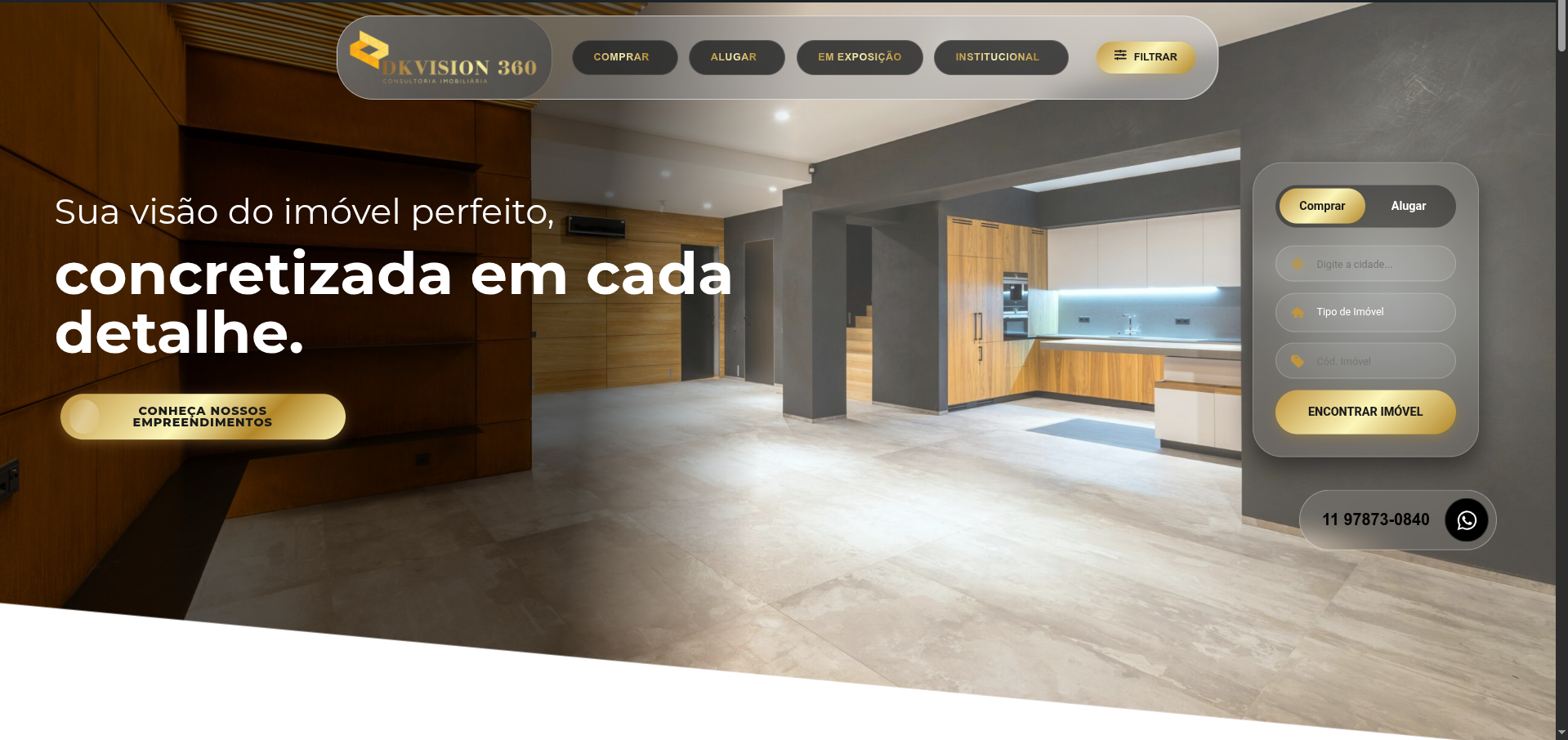 Elementor Pro • Portal Criado para imobiliaria Dkvision360 para exposição de imoveis, apresentação da identidade da marca e conversão de novos clientes