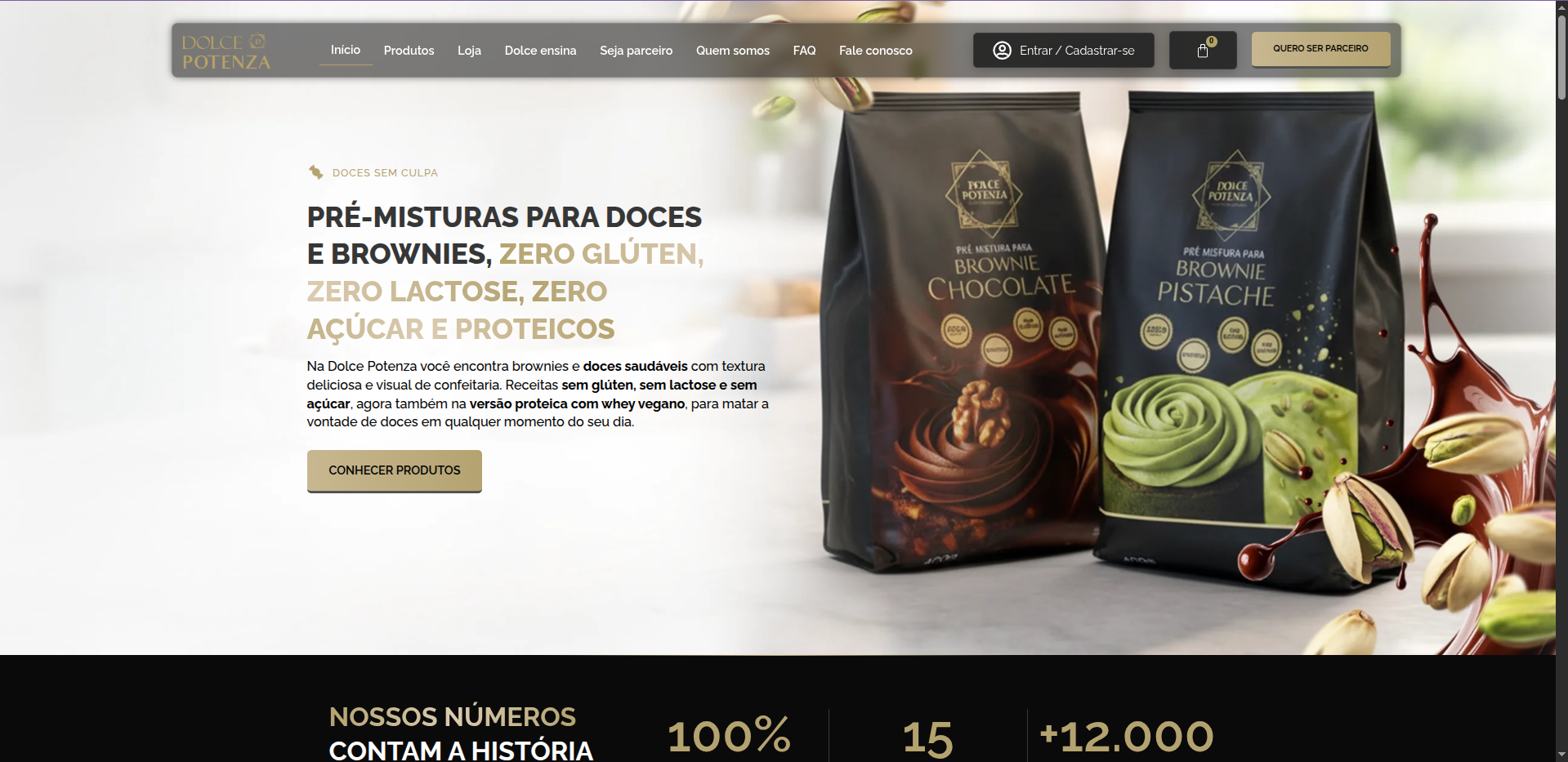 Wordpress, Elementor e Woocommerce, ERP Bling • E-commerce criado para a confeitaria Dolce Potenza, com o objetivo de expandir a presença online da marca, facilitar o processo de pedidos e oferecer uma experiência de compra conveniente para os clientes, além de destacar os produtos deliciosos da confeitaria e impulsionar as vendas.