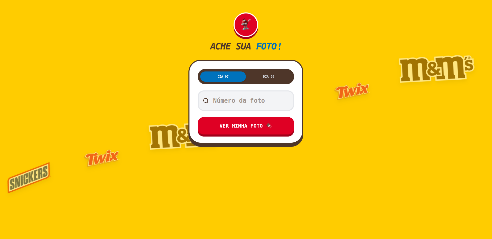 React, TailwindCSS, Javascript, Supabase com Storage R2 Cloudflare • Projeto feito para edição do BBD 2026 em Parceria com agencia de Marketing responsavel pelo stand de fotos da MMs, Snickers e Twix, onde os clientes podiam tirar fotos em um photobooth e depois acessar uma plataforma para visualizar e baixar suas fotos, além de ter a opção de compartilhar nas redes sociais.
